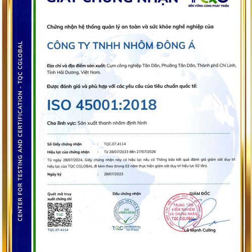 Công ty TNHH Nhôm Đông Á nằm tại Cụm CN Tân Dân, Phường Lê Đại Hành, TP. Hải Phòng, hiện đang là một trong những nhà máy sản xuất nhôm hàng đầu tại Việt Nam.
